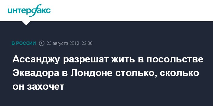 Лондон. 23 августа. INTERFAX.RU - Руководители Эквадора утверждают, что основатель Wikileaks Джулиан Ассандж сможет находиться в посольстве их страны в Лондоне столько, сколько пожелает, сообщает в четверг сайт британской газеты The Guardian.