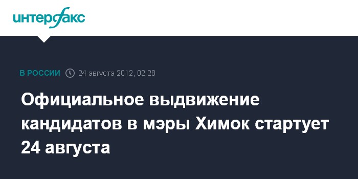 Москва. 24 августа. ИНТЕРФАКС - Выдвижение кандидатов на пост мэра подмосковных Химок стартует в пятницу, сообщил председатель избирательной комиссии Московской области Ирек Вильданов.