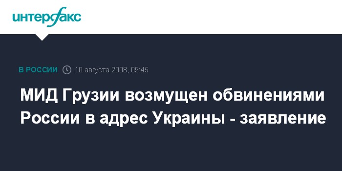 Москва. 10 августа. INTERFAX.RU - Министерство иностранных дел Грузии возмущен обвинениями со стороны МИД РФ в адрес украинской стороны.