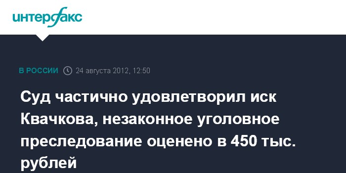Как передает корреспондент "Интерфакса", таким образом суд в пятницу частично удовлетворил иск Квачкова.