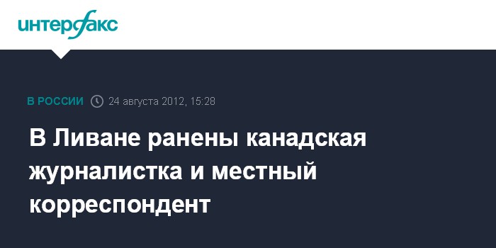 Бейрут. 24 августа. INTERFAX.RU - Ливанский корреспондент и канадская журналистка получили ранения в результате снайперского огня в городе Триполи на севере Ливана, сообщило в пятницу Национальное информационное агентство.