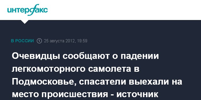 "На пульт экстренных служб поступили сигналы от очевидцев с места событий о том, что на территории Клинского района упал легкомоторный винтовой самолет. Сейчас эта информация проверяется. На место выехали группы спасателей", - сказал собеседник агентства.