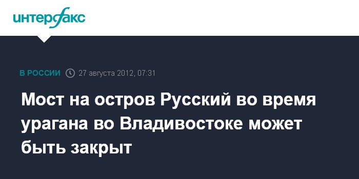 "Нас мост на Русский беспокоит в том плане, что наблюдений по нему еще нет. Точно сказать, как сила ветра будет на мосту во время прохождения тайфуна, пока невозможно. Нагрузка на него довольно приличная с учетом всех данных. Там своеобразная аэродинамическая труба, высота пилоном более 300 метров", - сообщил на брифинге в понедельник глава Примгидромета Борис Кубай.