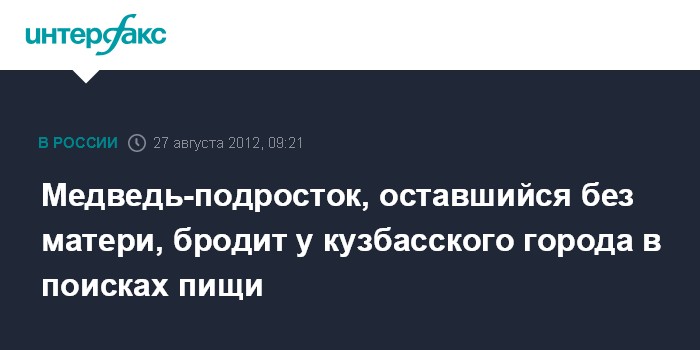 Кемерово. 27 августа. INTERFAX.RU - Власти Междуреченска (Кемеровская область) и оперативные службы призывают не беспокоиться местных жителей, встревоженных сообщением о появлении в городе медведя.