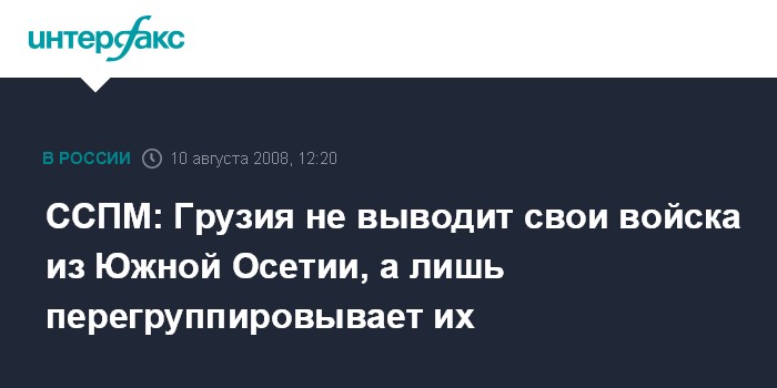 "Говорить о том, что грузинские войска начали вывод своих вооруженных формирований из Южной Осетии, преждевременно. В настоящее время мы наблюдаем лишь перемещение грузинских войск", - заявил "Интерфаксу-АВН" помощник командующего ССПМ Владимир Иванов.