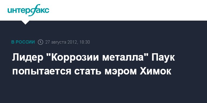Москва. 27 августа. INTERFAX.RU - Лидер рок-группы "Коррозия металла" Сергей Троицкий по прозвищу "Паук" планирует выдвинуть свою кандидатуру на пост мэра подмосковных Химок. "Будем участвовать в выборах (главы Химок - ИФ). Мы уже часть документов собрали, через несколько дней подадим на регистрацию и будем собирать подписи", - заявил Троицкий "Интерфаксу" в понедельник.