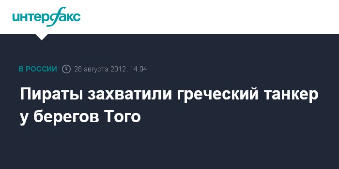 Куала-Лумпур. 28 августа. INTERFAX.RU - Группа пиратов захватила греческий танкер недалеко от берегов Того, сообщили во вторник в Международном морском бюро.