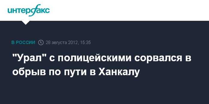 Москва. 28 августа. INTERFAX.RU - Восемь сотрудников полиции, по предварительным данным, пострадали при падении с обрыва машины в Чечне, сообщили "Интерфаксу" во вторник в пресс-центре МВД России.