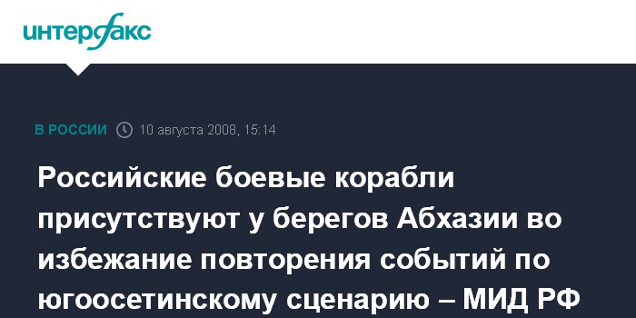 Российские боевые корабли присутствуют у берегов Абхазии во избежание повторения событий по югоосетинскому сценарию – МИД РФ