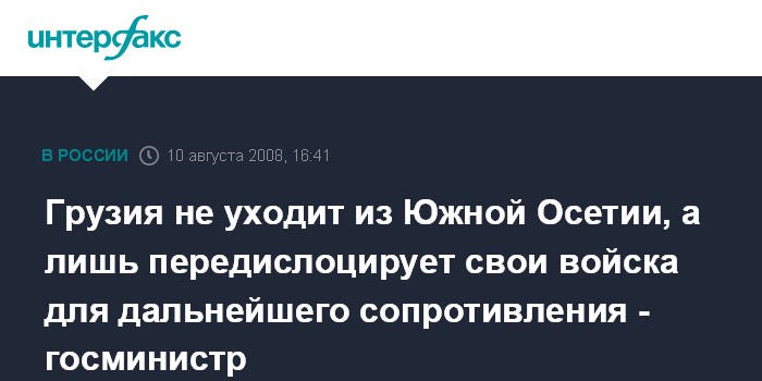 Тбилиси. 10 августа. INTERFAX.RU - Госминистр Грузии Тимур Якобашвили заявляет, что "ни о каком отступлении грузинских войск из цхинвальского региона речи нет".