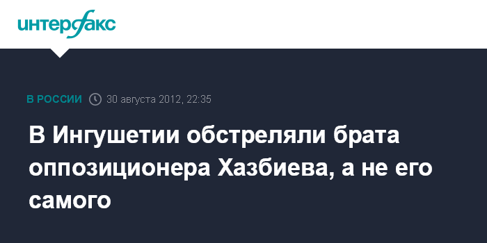 Назрань. 30 августа. INTERFAX.RU - Известный ингушский оппозиционер Магомед Хазбиев сообщил агентству "Интерфакс-Юг", что нападению бандитов в Назрани подвергся не он, а его брат Берд Хазбиев.