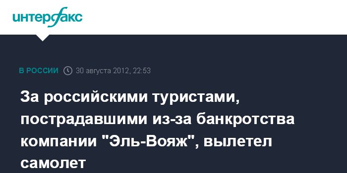 Москва. 30 августа. INTERFAX.RU - Из Москвы за российскими туристами, застрявшими в Египте из-за финансовых проблем туркомпании "Эль-Вояж", вылетел самолет, сообщила порталу "Интерфакс - Туризм" пресс-секретарь Ростуризма Ирина Щеголькова.