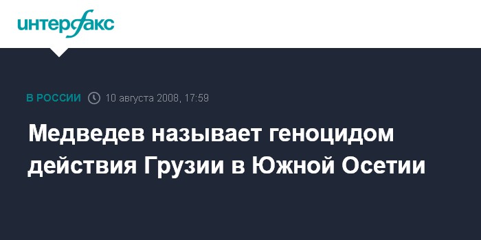 Горки (Московская область). 10 августа. INTERFAX.RU - Президент России Дмитрий Медведев назвал геноцидом действия Грузии в Южной Осетии.