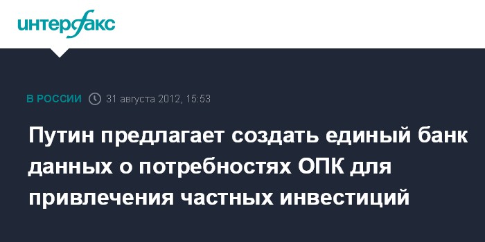 "Я встречаюсь с работниками (гражданских) учреждений, многократно слышал от них о готовности и желании работать по этой тематике. Часто приходится слышать, что частный инвестор не знает, что будет востребовано в оборонных секторах экономики, не может рассчитать, окупятся ли вложенные средства - одним из возможных путей решения данной задачи является создание единого банка данных с информацией о потребностях ОПК: на этой базе можно будет облегчить привлечение частных инвестиций", - заявил Путин на заседании Совбеза РФ в пятницу.