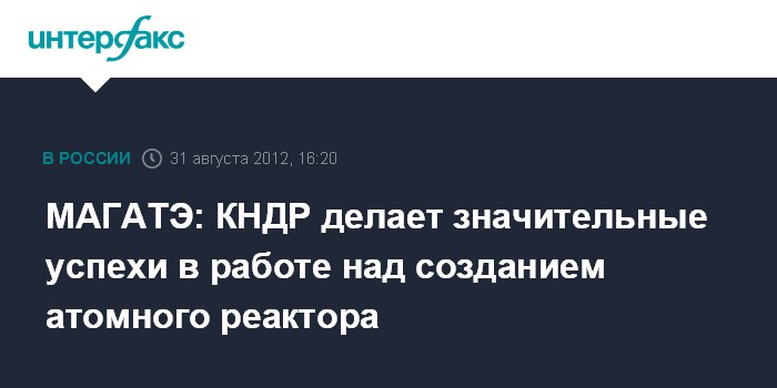 Вена. 31 августа. INTERFAX.RU - Северной Корее за последний год удалось добиться значительного прогресса в строительстве легководного атомного реактора, что расширяет возможности страны в сфере создания ядерного оружия, сообщают в пятницу западные СМИ со ссылкой на доклад МАГАТЭ.
