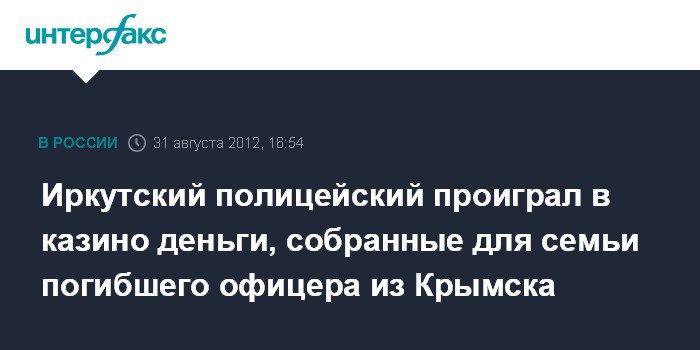 Иркутский полицейский проиграл в казино деньги, собранные для семьи погибшего офицера из Крымска