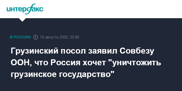 "Вторжение российских войск в Грузию переросло в полномасштабную оккупацию. Идет уничтожение мирных граждан, уничтожение грузинского государства", - сказал он в воскресенье на заседании Совбеза ООН, которое транслировалось телеканалом "Вести-24".
