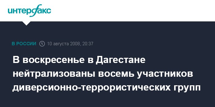 Москва. 10 августа. INTERFAX.RU - Один участник НВФ убит, семеро задержаны в ходе проведенных в воскресенье в Дагестане спецопераций.