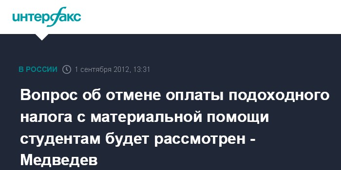 Вопрос об отмене оплаты подоходного налога с материальной помощи студентам будет рассмотрен - Медведев