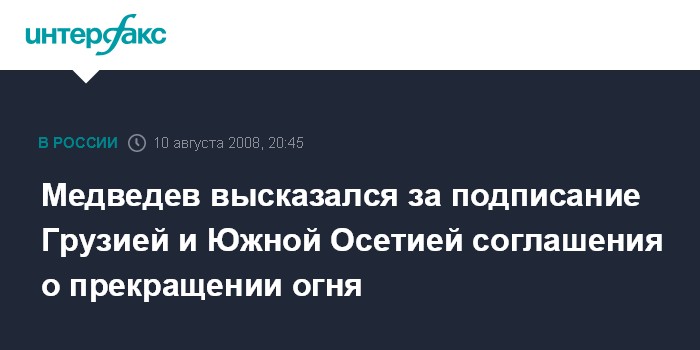 Медведев высказался за подписание Грузией и Южной Осетией соглашения о прекращении огня