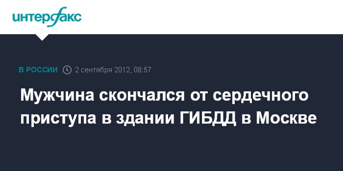 Мужчина скончался от сердечного приступа в здании ГИБДД в Москве