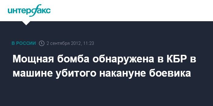 Нальчик. 2 сентября. INTERFAX.RU - Установлена личность боевика, уничтоженного силовиками накануне в Прохладненском районе Кабардино-Балкарии, в его автомобиле обнаружено мощное взрывное устройство, сообщает в воскресенье пресс-служба МВД по республике. "Это оказался пособник лидера бандподполья, действующего на территории Чегемского района, 1982 года рождения", - говорится в сообщении.