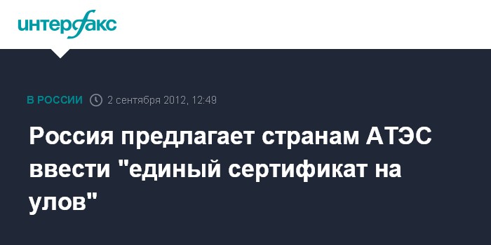 Россия предлагает странам АТЭС ввести "единый сертификат на улов"