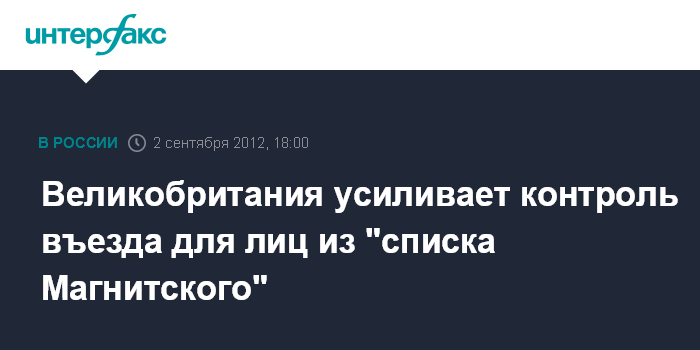 Великобритания усиливает контроль въезда для лиц из "списка Магнитского"