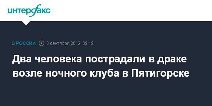 Пятигорск. 3 сентября. INTERFAX.RU - В Пятигорске (Ставропольский край) выясняют обстоятельства драки со стрельбой возле ночного клуба, в результате которой два человека были ранены, сообщает пресс-служба ГУ МВД России по краю.