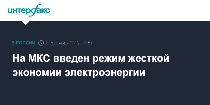 Москва. 3 сентября. INTERFAX.RU - Международная космическая станция (МКС) перешла на режим жесткой экономии электроэнергии в связи с тем, что электричество сейчас вырабатывает только пять из восьми солнечных батарей, сообщил "Интерфаксу-АВН" источник в ракетно-космической отрасли в понедельник.