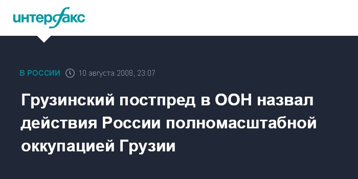 Москва. 10 августа. INTERFAX.RU - Постпред Грузии при ООН Ираклий Аласания называет действия России полномасштабной оккупацией Грузии.