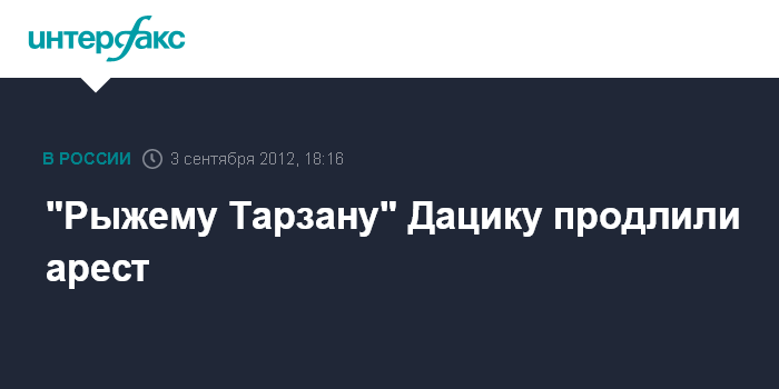 Санкт-Петербург. 3 сентября. INTERFAX.RU - Невский районный суд Петербурга в понедельник продлил до 5 декабря срок содержания под стражей Вячеславу Дацику, известному по прозвищу "Рыжий Тарзан". "Суд продлил срок содержания под стражей до 5 декабря. То ходатайство, которое было подано подсудимым об освобождении под залог, судом отклонено", - сообщил "Интерфаксу" адвокат Дацика Андрей Федорков.
