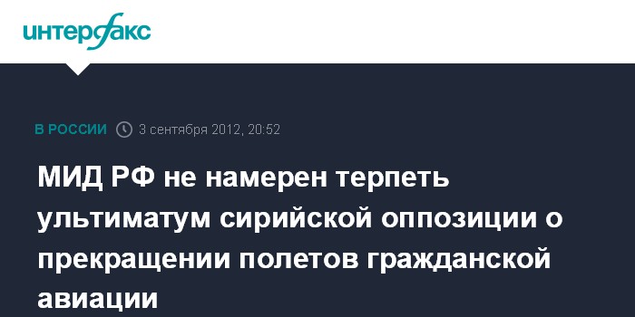 МИД РФ не намерен терпеть ультиматум сирийской оппозиции о прекращении полетов гражданской авиации