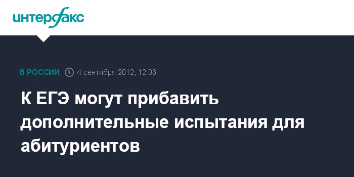 Москва. 4 сентября. INTERFAX.RU - Глава Минобрнауки РФ Дмитрий Ливанов считает возможным введение дополнительных вступительных испытаний, помимо ЕГЭ, при поступлении в вузы.