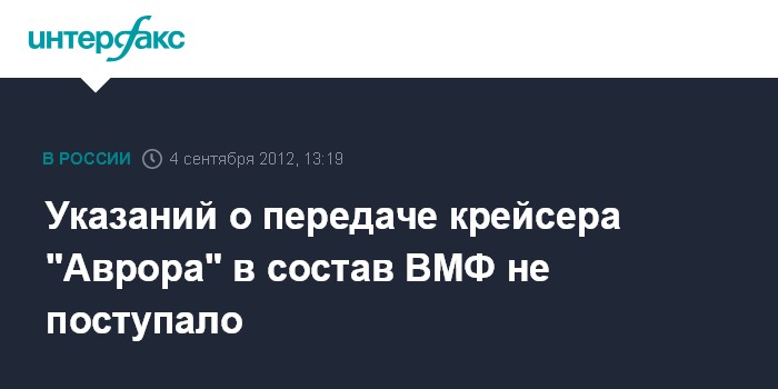 Указаний о передаче крейсера "Аврора" в состав ВМФ не поступало