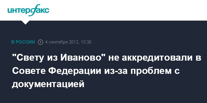 "Свету из Иваново" не аккредитовали в Совете Федерации из-за проблем с документацией