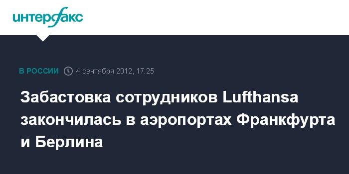 Забастовка сотрудников Lufthansa закончилась в аэропортах Франкфурта и Берлина