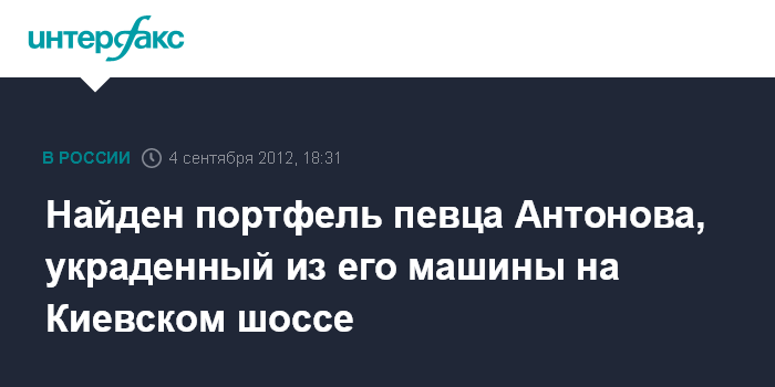 Найден портфель певца Антонова, украденный из его машины на Киевском шоссе
