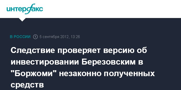 Москва. 5 сентября. INTERFAX.RU - Обыски в компании "Боржоми" связаны с информацией о возможном инвестировании опальным предпринимателем Борисом Березовским крупных денежных средств, добытых незаконным путем.