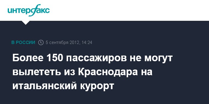 Представитель авиаперевозчика сообщил "Интерфаксу", что более 150 человек должны были вылететь из Краснодара в Италию в 8:20. Он добавил, что рейс задерживается по техническим причинам, в настоящее время все неполадки в самолете устраняются. Пассажирам авиакомпании обеспечены питанием и питьевой водой. Он добавил, что если в течение двух часов неисправности не будут устранены, авиакомпания поднимет вопрос о размещении пассажиров в гостиницах.