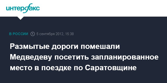 Размытые дороги помешали Медведеву посетить запланированное место в поездке по Саратовщине