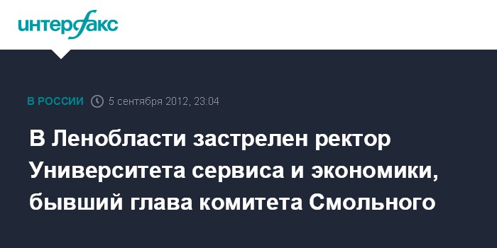 Санкт-Петербург. 5 сентября. INTERFAX.RU - Во Всеволожске (Ленинградская область) застрелен ректор Санкт-Петербургского государственного университета сервиса и экономики, экс-глава Комитета по науке и высшей школе Петербурга Александр Викторов.