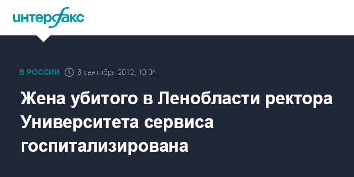 Москва. 6 сентября. INTERFAX.RU - Супруга ректора Санкт-Петербургского государственного университета сервиса и экономики, раненная при нападении преступника, была госпитализирована в состоянии средней тяжести, сообщил "Интерфаксу" в четверг источник в правоохранительных органах.