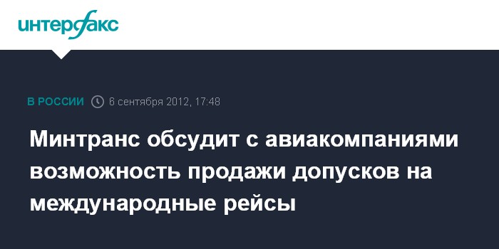 Геленджик. 6 сентября. INTERFAX.RU - Минтранс РФ 20 сентября планирует собрать представителей авиакомпаний для обсуждения предложения Федеральной антимонопольной службы (ФАС) о допуске авиакомпаний к выполнению международных рейсов через аукцион, сообщил замглавы Минтранса Валерий Окулов журналистам в кулуарах форума "Гидроавиасалон-2012" в Геленджике.