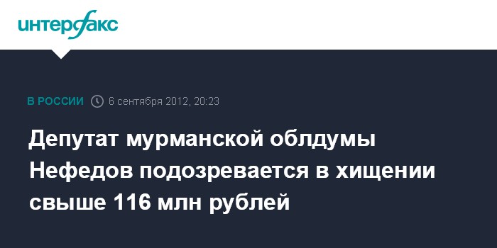 Депутат мурманской облдумы Нефедов подозревается в хищении свыше 116 млн рублей