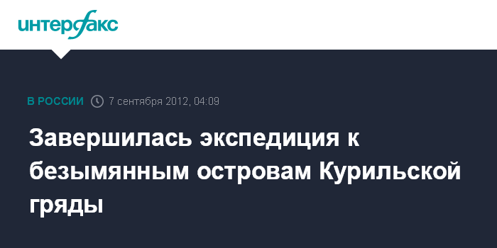 Южно-Сахалинск. 7 сентября. ИНТЕРФАКС-ДАЛЬНИЙ ВОСТОК - Завершилась трехдневная экспедиция "Имя на карте Курильских островов" к трем островам Малой Курильской гряды, которым предстоит дать названия. В пятницу вечером ее участники прибудут в сахалинский порт Корсаков.