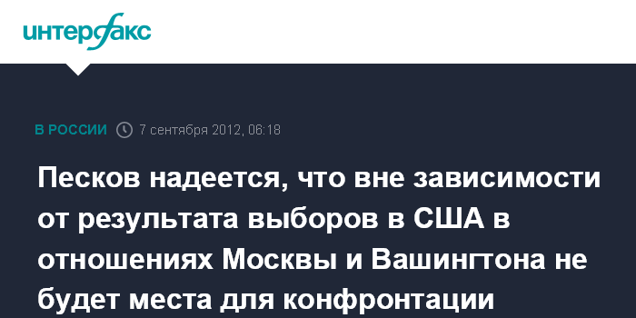 Песков надеется, что вне зависимости от результата выборов в США в отношениях Москвы и Вашингтона не будет места для конфронтации