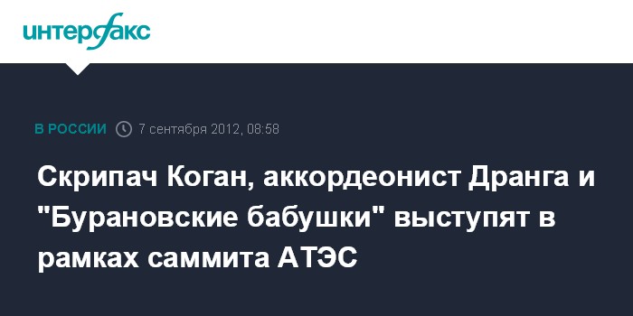 Скрипач Коган, аккордеонист Дранга и "Бурановские бабушки" выступят в рамках саммита АТЭС