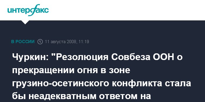 Чуркин: "Резолюция Совбеза ООН о прекращении огня в зоне грузино-осетинского конфликта стала бы неадекватным ответом на ситуацию"