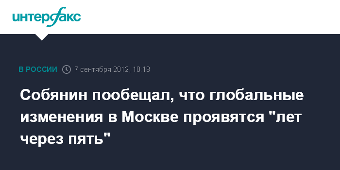 На вопрос журнала, когда в Москве будут ощутимы не точечные, а глобальные изменения, мэр ответил: "Думаю, лет через пять".